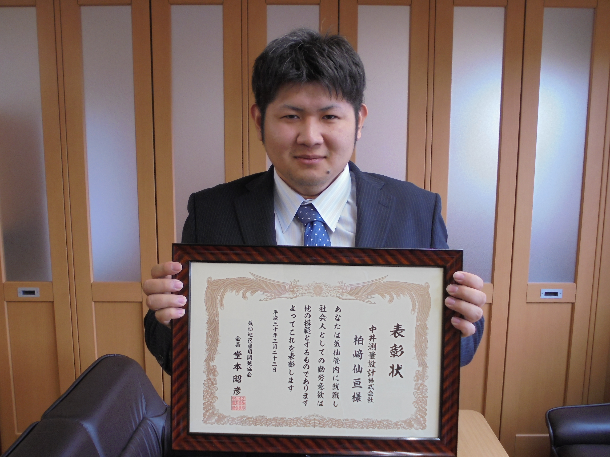 その中で、弊社技術部 柏﨑 仙亘 が「気仙地区優良勤労青少年表彰